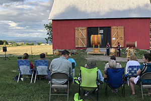 In 2014 Island Arts’ dream of owning a home base came true when we were gifted a Vermont iconic barn rescued by North Hero sculptor Anne M. August. The next year, we acquired the field adjacent to the barn in North Hero, making it possible to host up to 175 guests, expand the picnic area, and broaden our views of Lake Champlain and the Green mountains. After much structural work and renovations funded with grants and donor contributions, Island Arts concentrated most of its 35th year celebration there, in its own Island Arts Center, with programming meeting the needs of our communities and visitors.