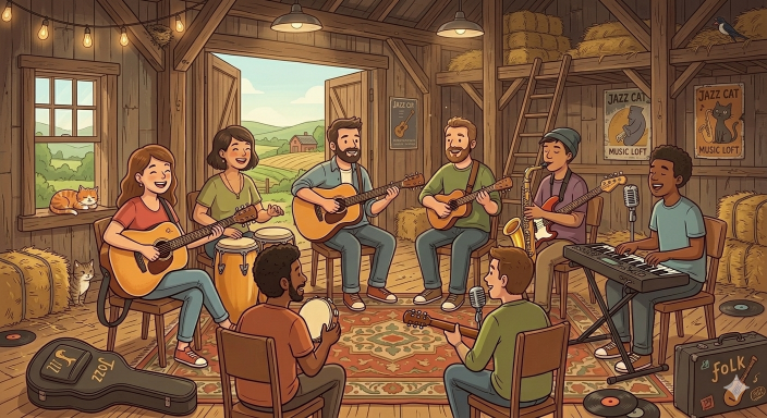 Attendees bring their instruments to the barn for an informal jam session. All instruments are OK, from bassoon and cello to ukelele and washboard. All ages OK. Children must have a parent or other adult accompanying.